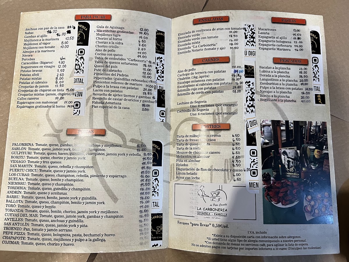 Sidreria La Carboneria de Pepe Cavalle Menu